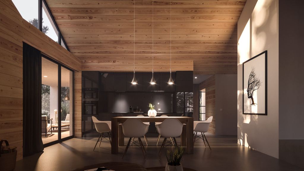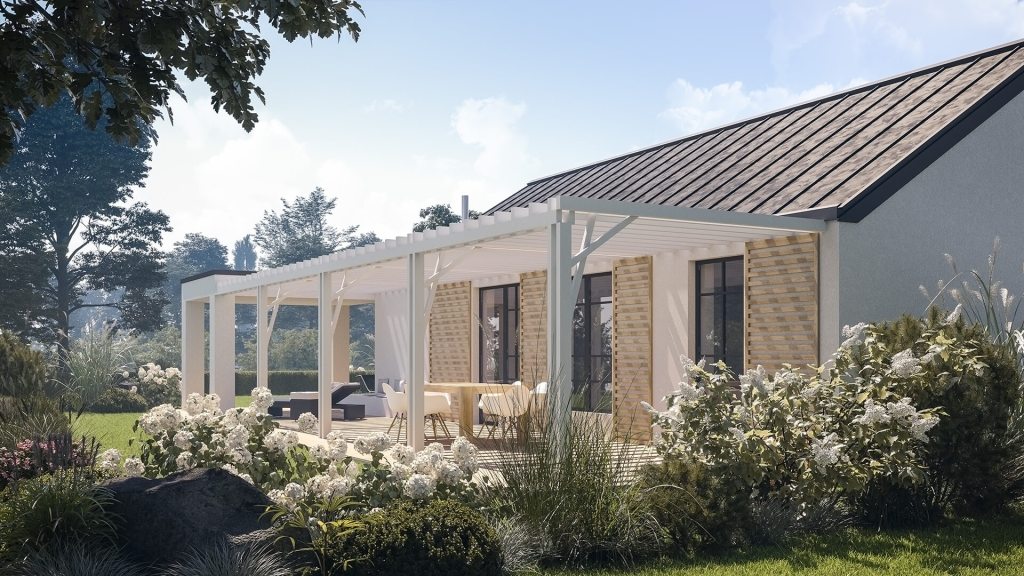 Barrierefreier Bungalow in Holz100-Bauweise für Saßmannshausen Immobilien (Fotorealisation meines Entwurfes von Uwe Meier – CHIMERICAL)