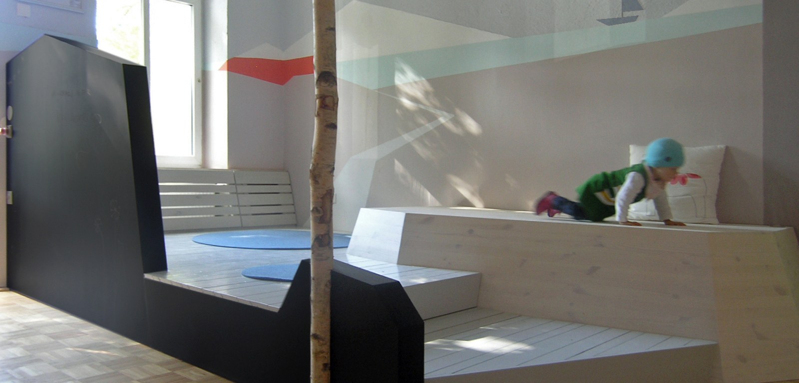 Kinder lieben Farben – und gerade deshalb ist es elementar, ihnen in ihren Räumen durch unaufdringliche Farbstimmungen angenehme Assoziationen zu ermöglichen. Wild und laut und bunt kann es in einer Kita zugehen, da kommt der Farbgestaltung eine ganz andere Rolle zu: sie muss einen ruhigen und harmonischen Rahmen bieten, damit gerade der Lärmpegel nicht noch durch zu wilde Farbkombinationen angeregt wird! Es darf auch durchaus erkennbare Elemente in der Wandgestaltung geben, der Entdeckergeist und die Phantasie angeregt werden! Aber auch hier wird darauf geachtet, der kindlichen Vorstellungskraft nicht allzu konkrete Vorgaben zu machen, damit sie sich entfalten und eigene innere Bilder erzeugen kann.