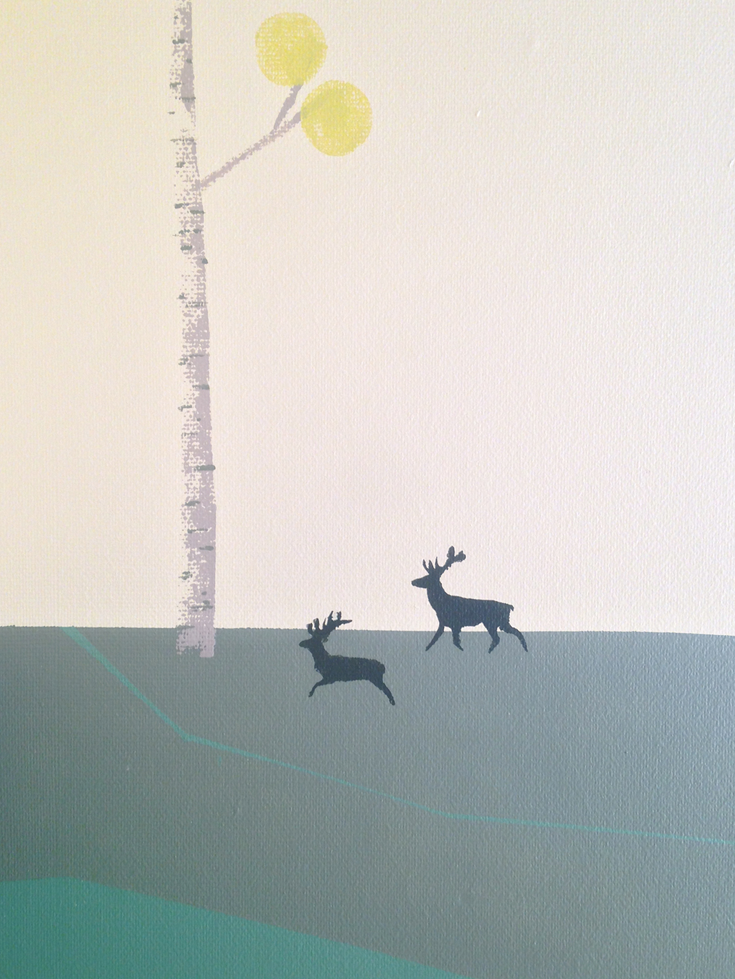 Ganz bewusst lassen in der Grafik die Landschaft und die Motive viel Raum für die eigene Phantasie! Kleine Geschichten und Szenen werden nur angedeutet, der Kontext kann selbst hinzugedichtet werden.